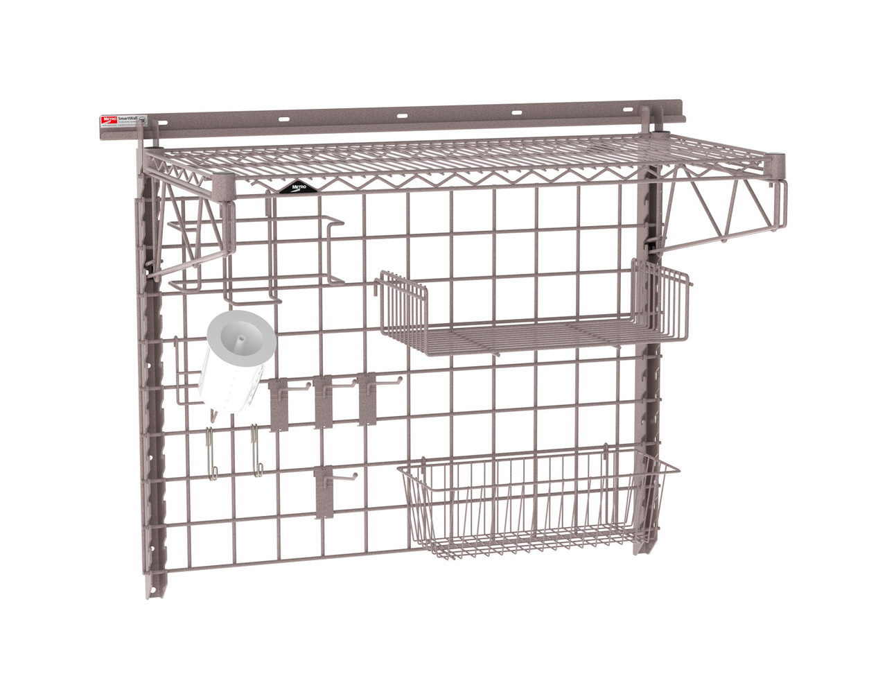This 1-shelf configuration includes a Metroseal Gray wire shelf with Microban antimicrobial protection to help maintain a cleaner surface. The Metroseal Gray wall grid and included accessories maximize organization by keeping prep tools and supplies within easy reach. By moving storage off the work surface and onto the wall, this SmartWall system helps promote food safety, reduce clutter, and free up valuable table space for ingredient preparation.