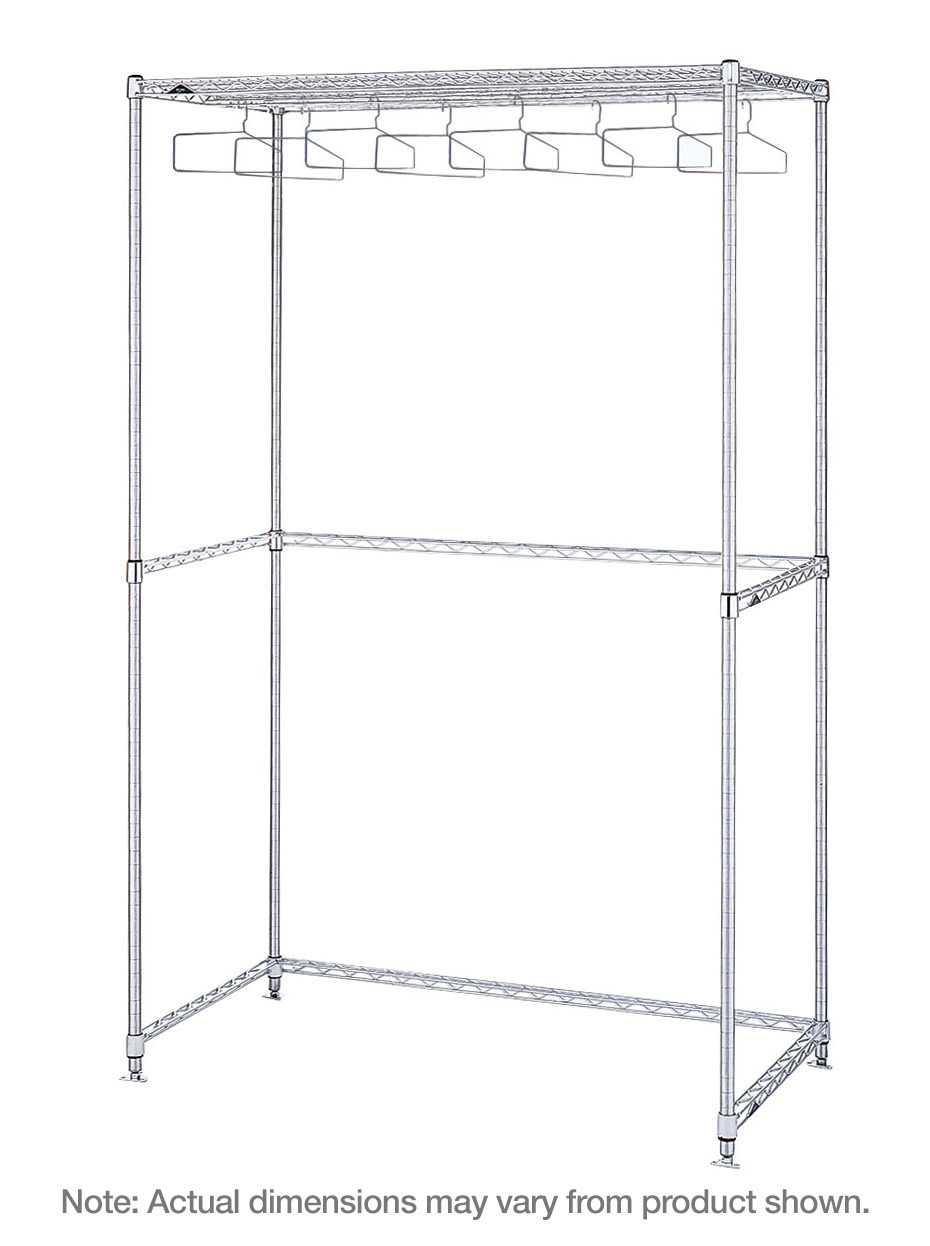 Racks are designed to provide efficient storage of Cleanroom garments. Type 304 stainless steel construction throughout. Electro-polished, Type 304 stainless steel hangers are included (10 lbs. load rating per hanger). Hangers are spaced at 3" (75mm) intervals. Unique hanger capture mechanism provides theft deterrence. Open wire construction promotes laminar air flow. Adjustable stainless steel triangular foot plates provided for floor mounting. Unit is non-conductive, but can be made conductive with the addition of HD Aluminum Split Sleeves (9986HZ).