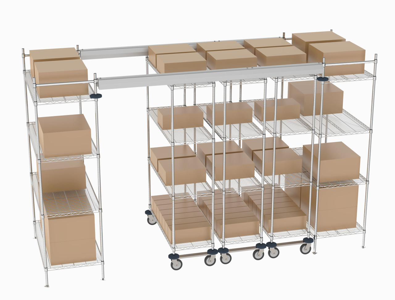Metro Top-Track Overhead Track Shelving Complete Kit with Super Erecta Chrome Wire Shelves