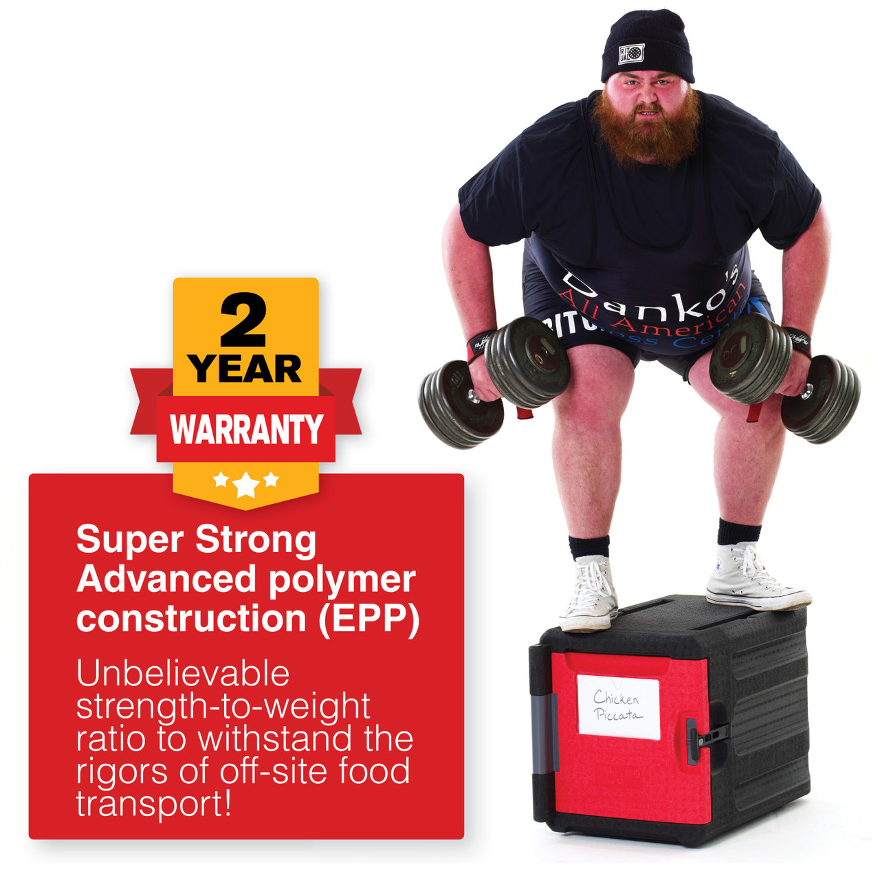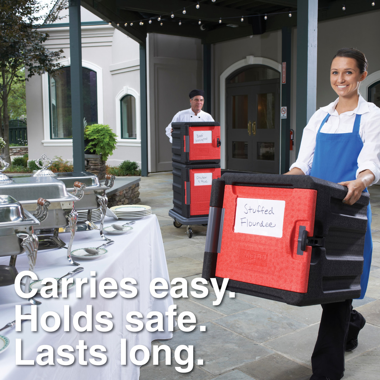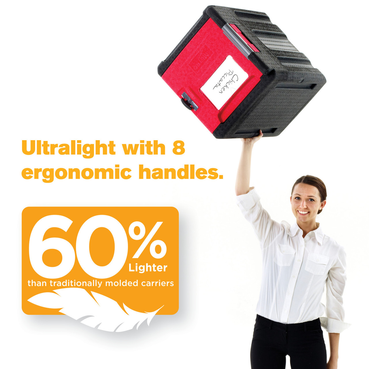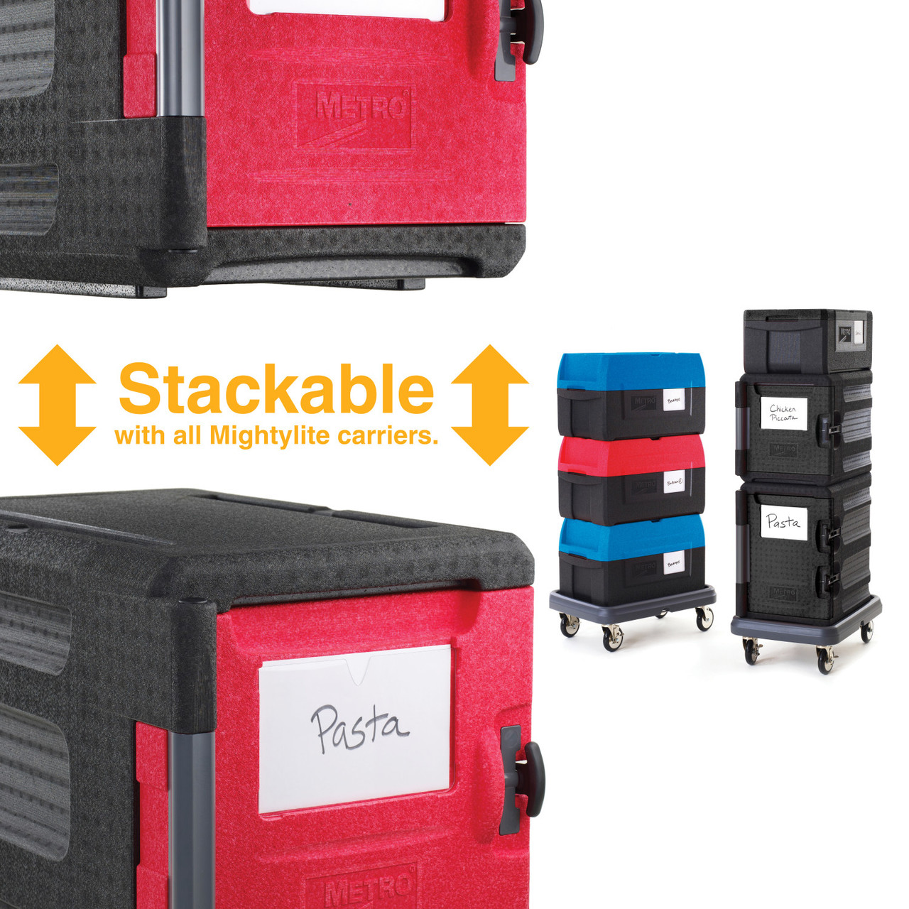Attractive, ultralight, and durable insulated front-load pan carrier for transporting and delivering hot and cold 12x20/GN food pans to off-site locations. ML300 holds approximately 45 quarts of food. Keep food safe for 5+ hours. Advanced polymer foam construction with high strength-to-weight ratio withstands impact without damage. Weighs 60% less than traditional polymer molded, urethane foam-filled carriers. Eight convenient, ergonomically-friendly, integrated handles provide the ultimate flexibility to facilitate lifting, carrying, and moving in various situations. Includes complimentary wire caddy to help organize and hold common temperature maintenance tools and other odd shaped items such as quart containers.