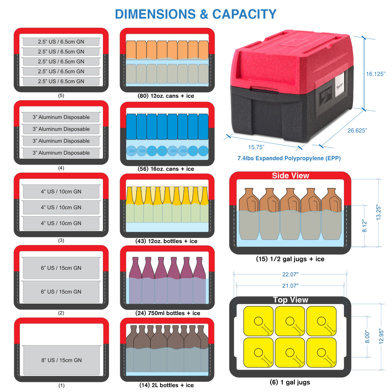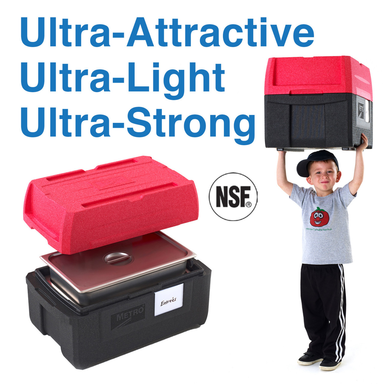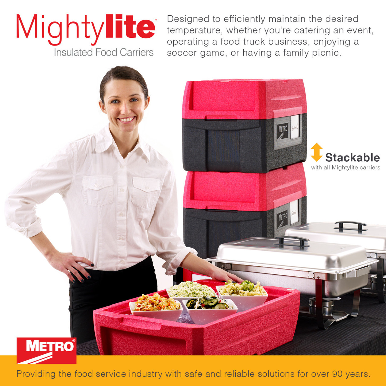 ML180XL with innovative BigBoy multifunctional lid provides 63% more storage, clearance to store taller items, and doubles as a server. Ultra light, super-strong insulated food carriers that easily hold & transport virtually everything for 5+ hours! 4 convenient ergonomic handles, facilitates lifting, carrying, and moving in any situation. Stacks perfectly with Mightylite front-loaders, allowing you to transport all your food and beverages in one efficient and secure stack. 80% lighter than traditional polymer molded, urethane foam filled carriers and 60% lighter than coolers. ML180XL only weighs 4.6 lbs. (2.1kg).