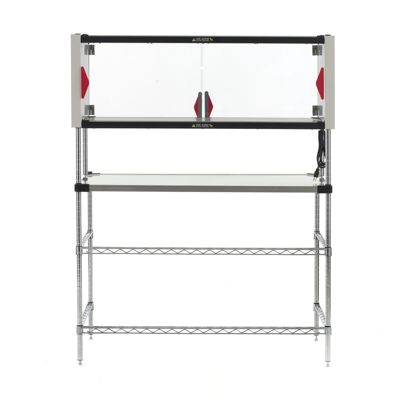 The Enclosed Super Erecta Hot Heated Shelf features an adjustable thermostat to control the shelf’s radiant heat up to a maximum temperature of 200°F (93°C). The enclosure also includes front and rear clear polycarbonate doors to extend holding time.
