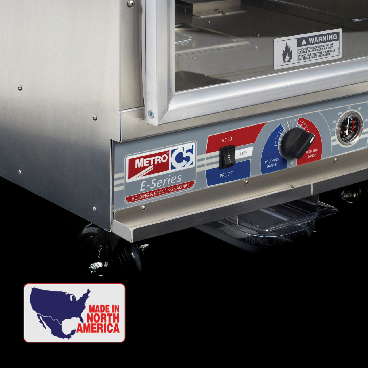 Get the right essentials, and the reliability of a trusted brand. Metro’s value driven C5 E-Series design provides the right mix of features to economically hold & proof in the same cabinet. Universal slides accommodate a variety of pans and higher power output assures food stays hot, safe, and appetizing. C5 E-Series is a winning combination of the best features, the right price, and top-quality construction. This full height cabinet includes 12 pairs of universal pan slides.