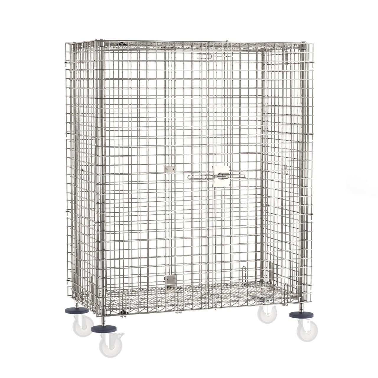 Keep sensitive items safe from loss or pilferage. Heavy-gauge open wire construction keeps contents visible at all times, making it easy to check inventory. Each door opens 270 degrees and can be secured along the sides of the unit. Shipped knocked down to save on freight costs. Assembles in minutes. Units include two Stainless Steel Super Erecta shelves which must be used as the top and bottom shelves of the unit. Add optional intermediate shelves for increased storage capabilities. Preconfigured models with intermediate shelves also include stainless steel, cart-washable casters (2 swivel/2 brake). For all other models, casters are not included and must be ordered separately.