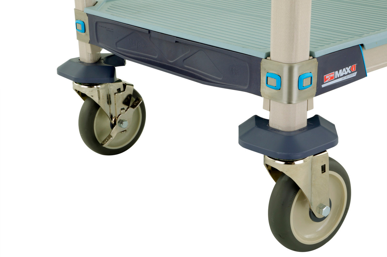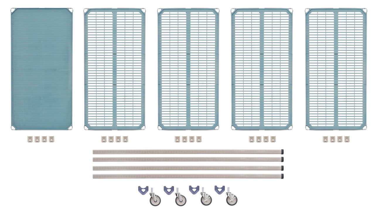 The strongest, most versatile, corrosion proof shelving system in the world. Removable polymer shelf mats for easy cleaning. Shelves can be positioned in 1" increments along the length of the post. Lifetime warranty against rust and corrosion. Posts and shelf mats include built-in Microban antimicrobial product protection to keep the product "cleaner between cleanings". Consists of 5 shelves (4 open grid, 1 MetroMax i solid), 74" posts, wedge connectors, and polyurethane casters.