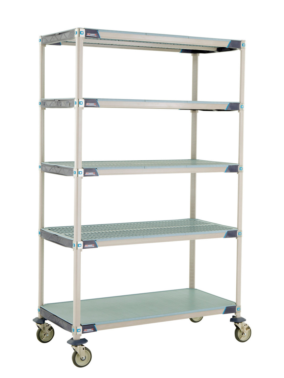MetroMax i 5-Shelf Industrial Plastic Shelving Mobile Cart, Solid Bottom Shelf