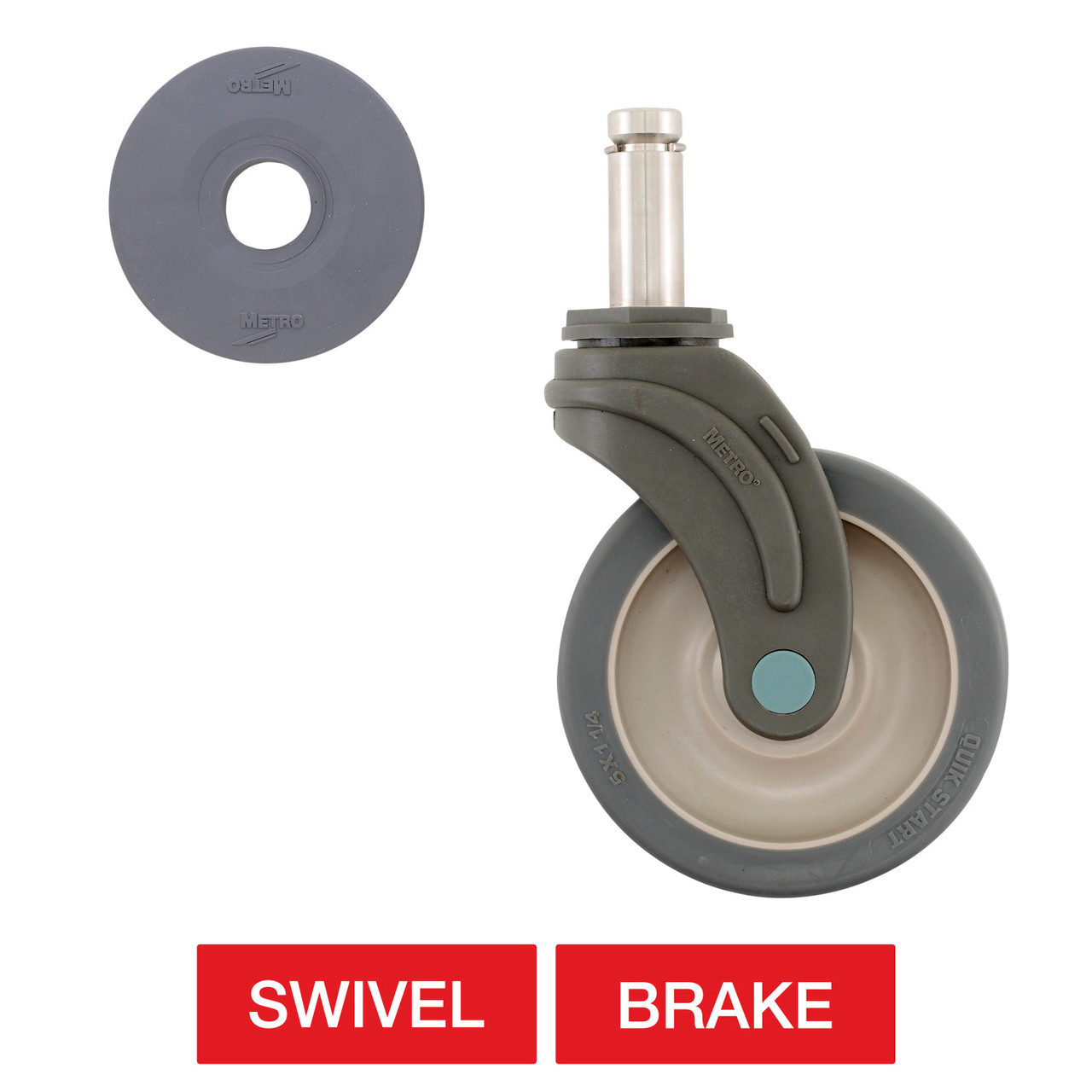 Metro 5" Polymer and Stainless Steel Total-guard Stem Casters for Super Erecta Industrial Wire Shelving Racks
