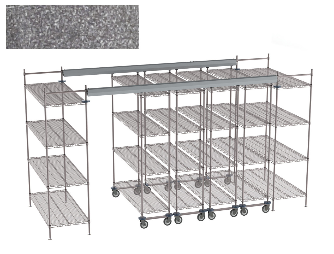 Metro Top-Track Overhead Track Shelving with Super Erecta Metroseal Gray Shelves