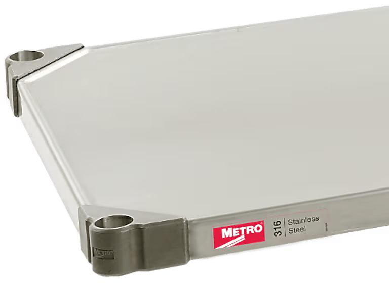Metro's 316 solid stainless shelves are designed to meet the highest standards for cleanroom and sterile storage environments.