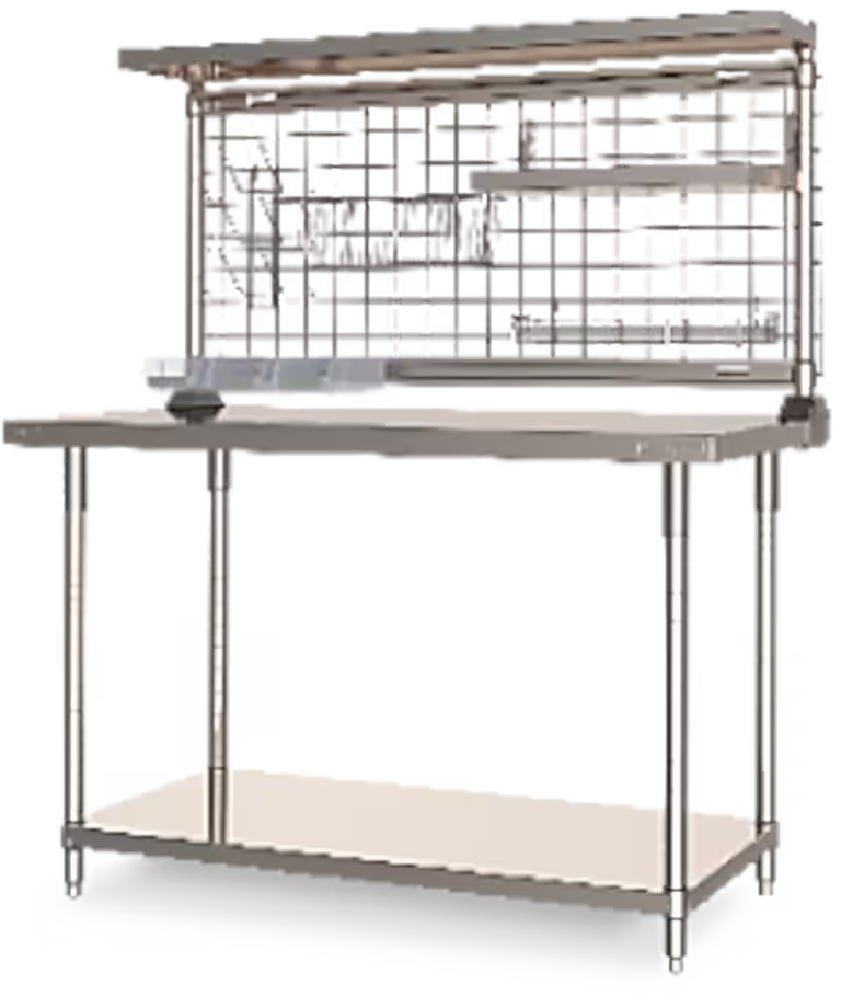 Metro's 316 TableWorx Premium Work Tables are built to deliver strength, versatility, and cleanability in demanding environments. Each unit features a heavy-duty Type 316 stainless steel top with an optional backsplash to help contain spills and maintain a sterile workspace. The Type 304 stainless steel legs and frame provide reliable support and durability, while a variety of configurations, including cantilevered shelves, undershelves, and leveling feet, allow you to customize the table to your workflow.